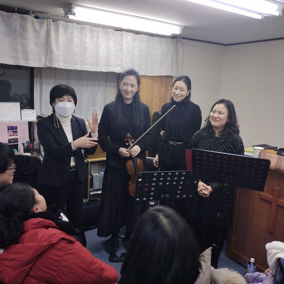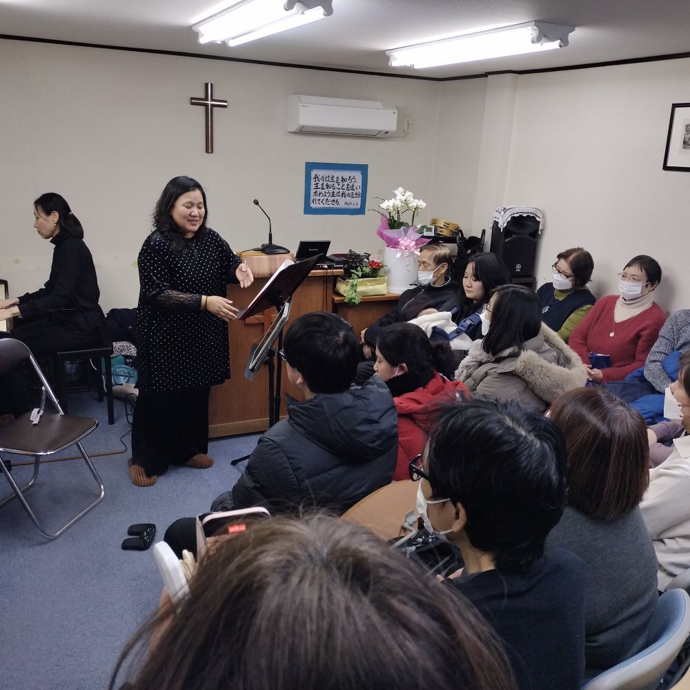 通常は一部と二部に分かれて礼拝時間を持ちますが年に数回ほど日本人と韓国人による共同礼拝を開いています。いつもの礼拝の形式にこだわらず特に賛美を中心とした礼拝を捧げます。その後の交わりや持ち寄っての食事など喜びを分かち合う時間を持ちます。